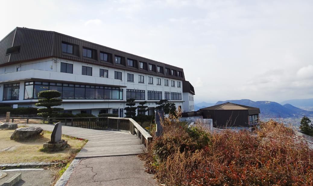 ランチもできる宿泊施設。瀬戸大橋や集落が広がる讃岐平野と塩飽諸島が眺められる展望地。特に空気が澄んだ晩秋の夕暮れの景色がオススメです。